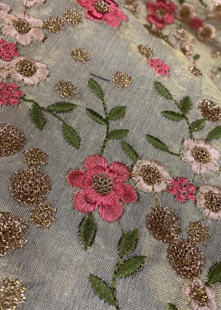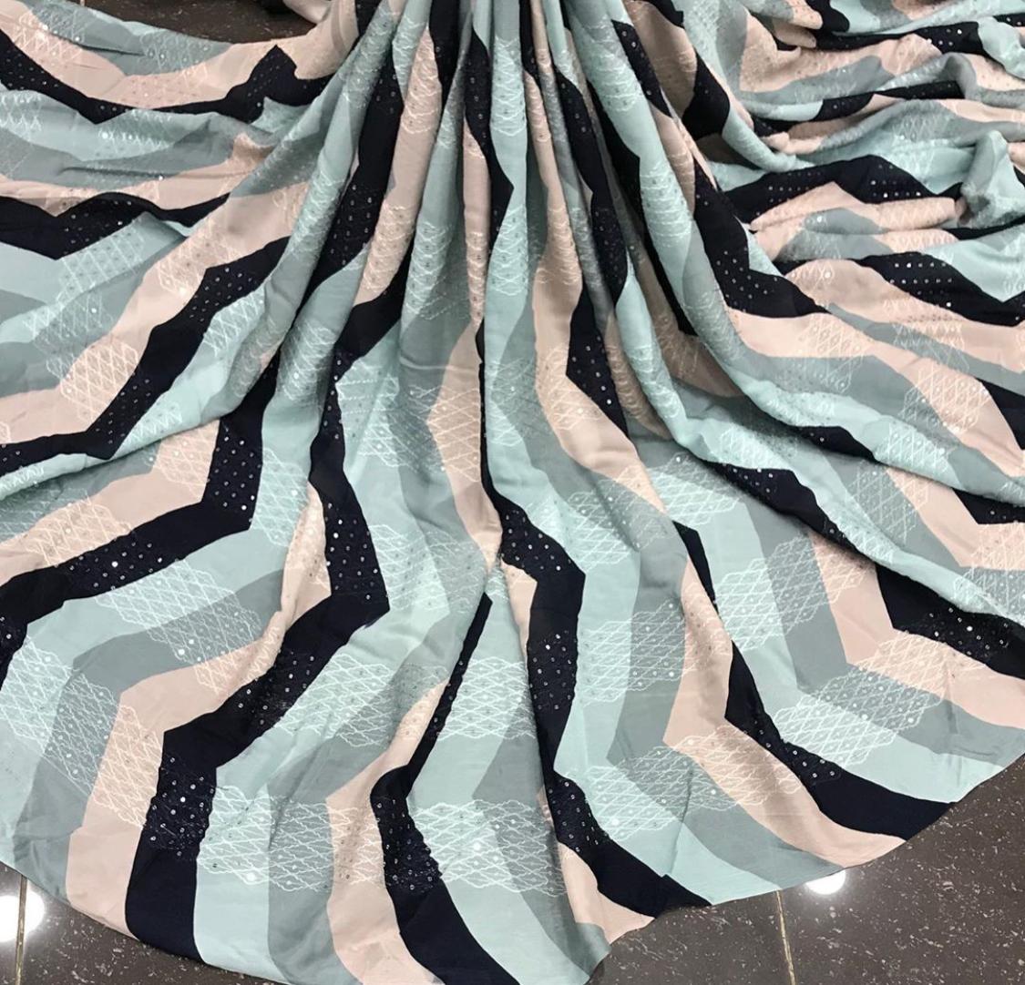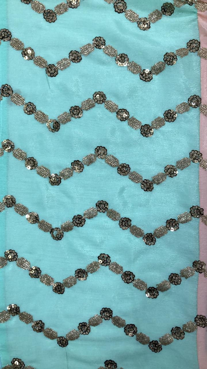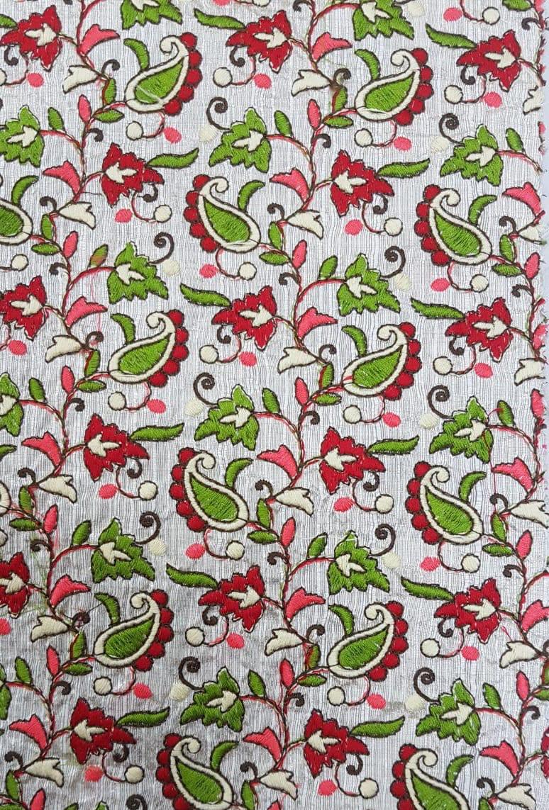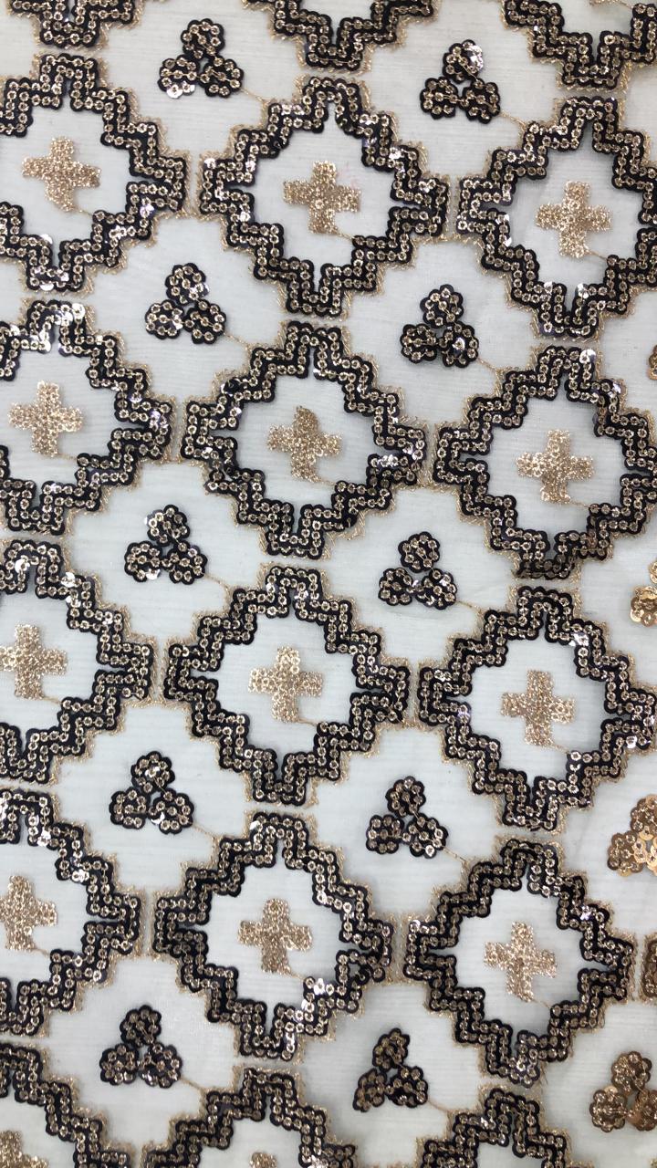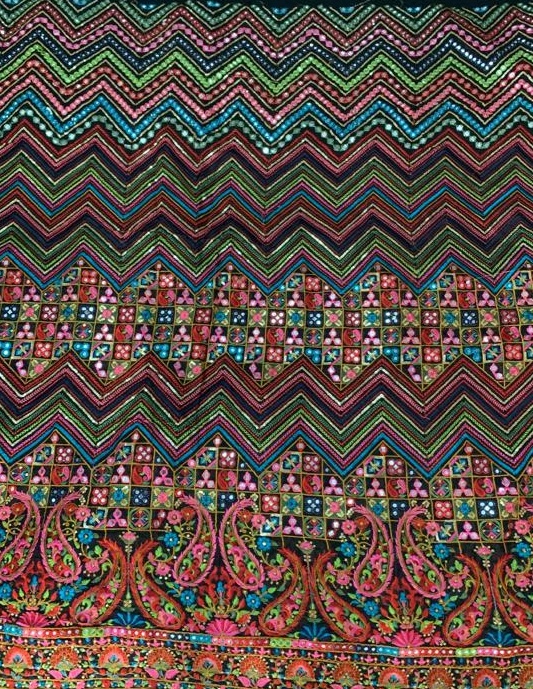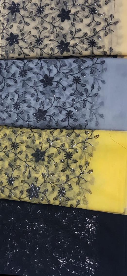 Schiffli, multi head, single sequins, sandwich sequins, four sequins, chain stitch, cording, ram leela pattern and many more embroidery available on net, silk, denim, cotton, jam satin, dupian silk, chiffon, georgette, viscose, muslin etc. and can be used in ladies wear, gents wear, kids wear, home décor, accessories like face masks, foot wear, hand bags etc.