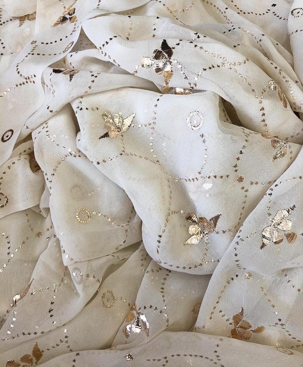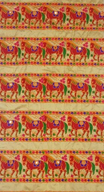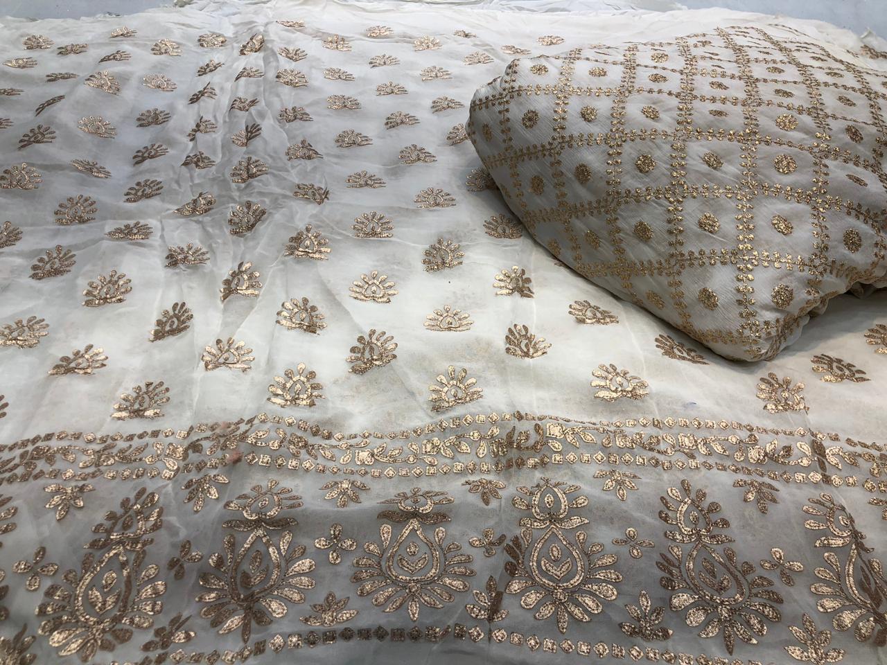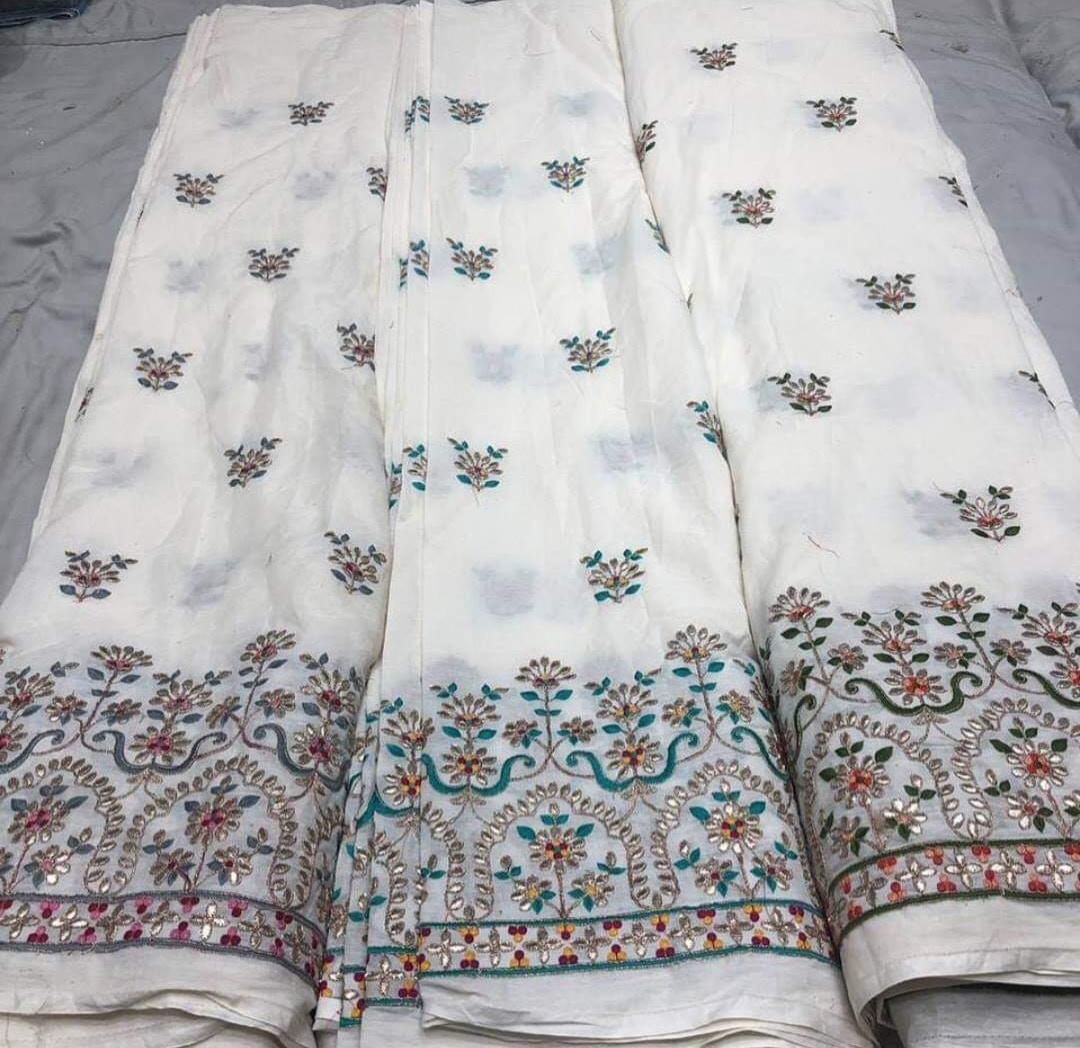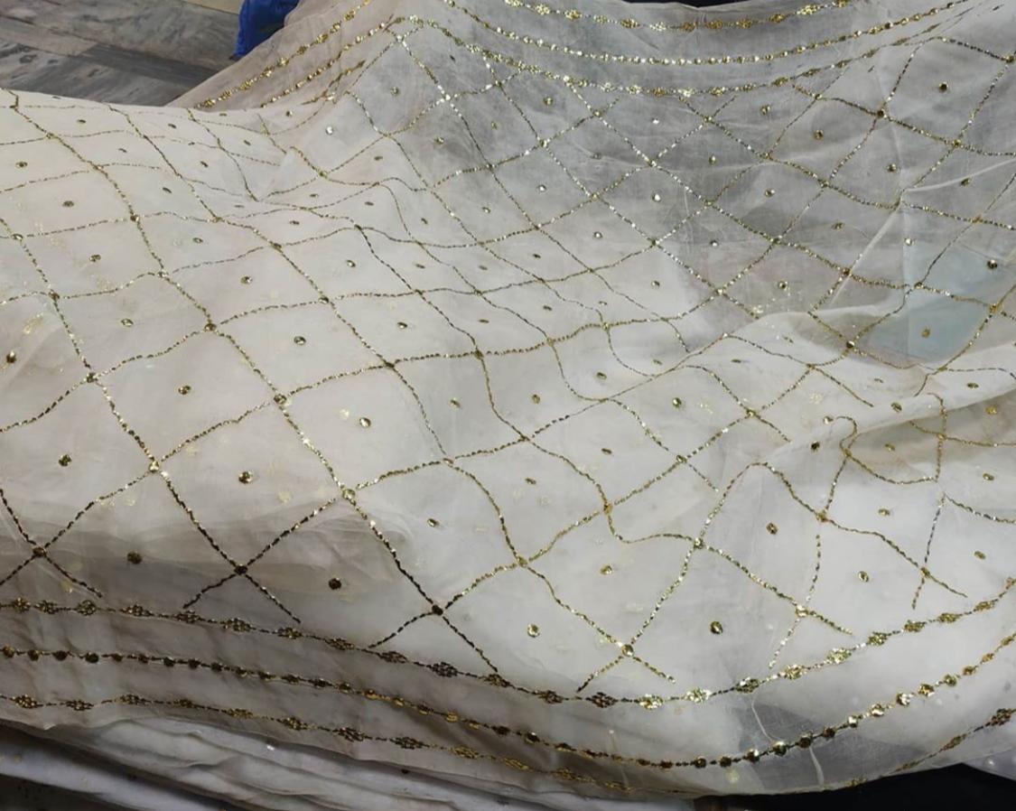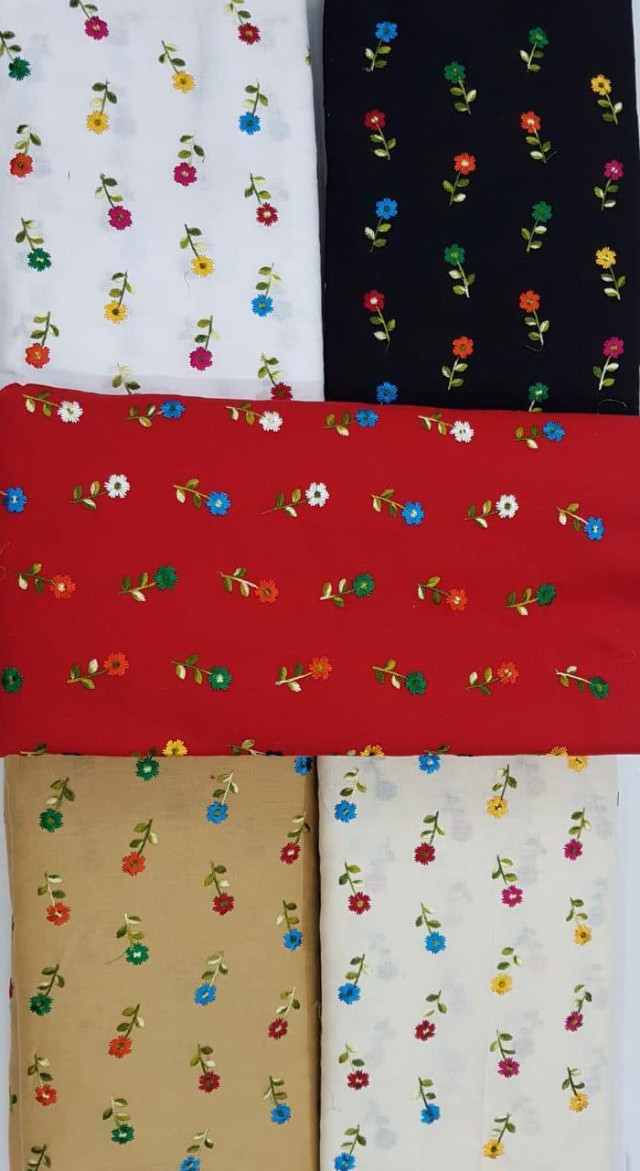 Schiffli, multi head, single sequins, sandwich sequins, four sequins, chain stitch, cording, ram leela pattern and many more embroidery available on net, silk, denim, cotton, jam satin, dupian silk, chiffon, georgette, viscose, muslin etc. and can be used in ladies wear, gents wear, kids wear, home décor, accessories like face masks, foot wear, hand bags etc.