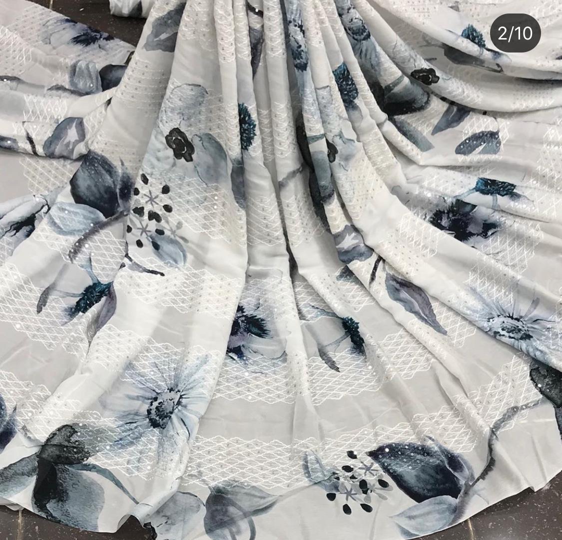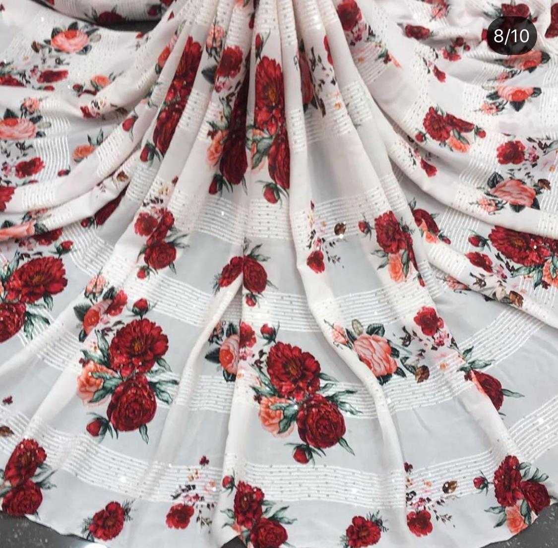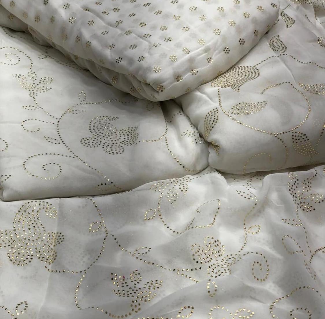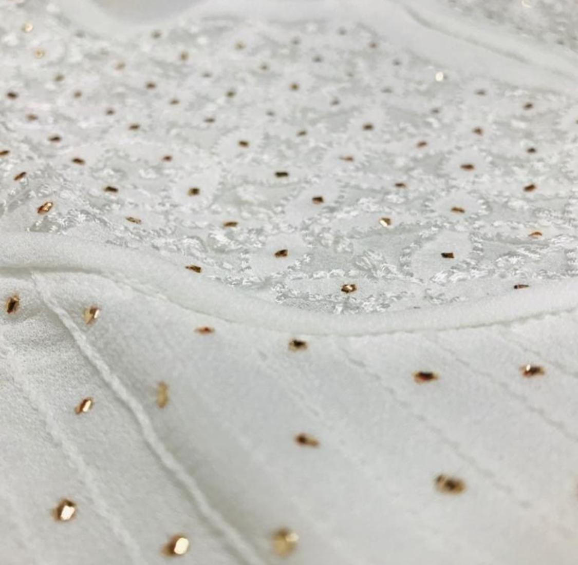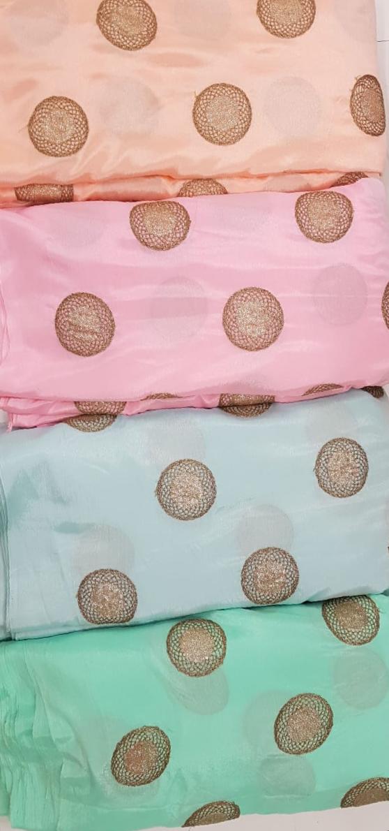 Schiffli, multi head, single sequins, sandwich sequins, four sequins, chain stitch, cording, ram leela pattern and many more embroidery available on net, silk, denim, cotton, jam satin, dupian silk, chiffon, georgette, viscose, muslin etc. and can be used in ladies wear, gents wear, kids wear, home décor, accessories like face masks, foot wear, hand bags etc.